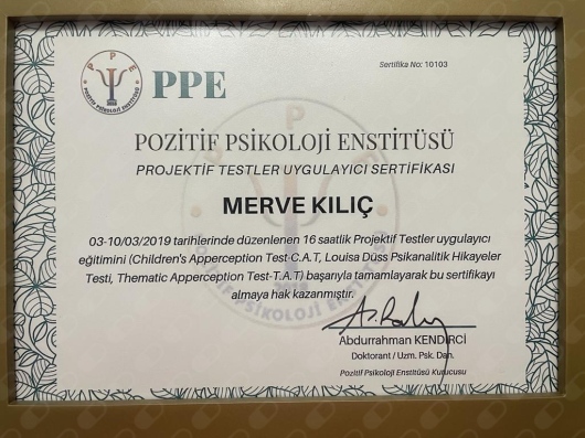 • Projektif Testler Uygulayıcı Sertifika (Pozitif Psikoloji Enstitüsü)