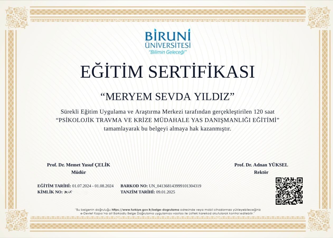 Avrasya Üniversitesi, Psikoloji bölümü mezunuyum. Üsküdar Üniversitesinde, Aile Danışmanlığı alanında yüksek lisans yapıyorum ve alanım ile ilgili tez yazma dönemimdeyim.