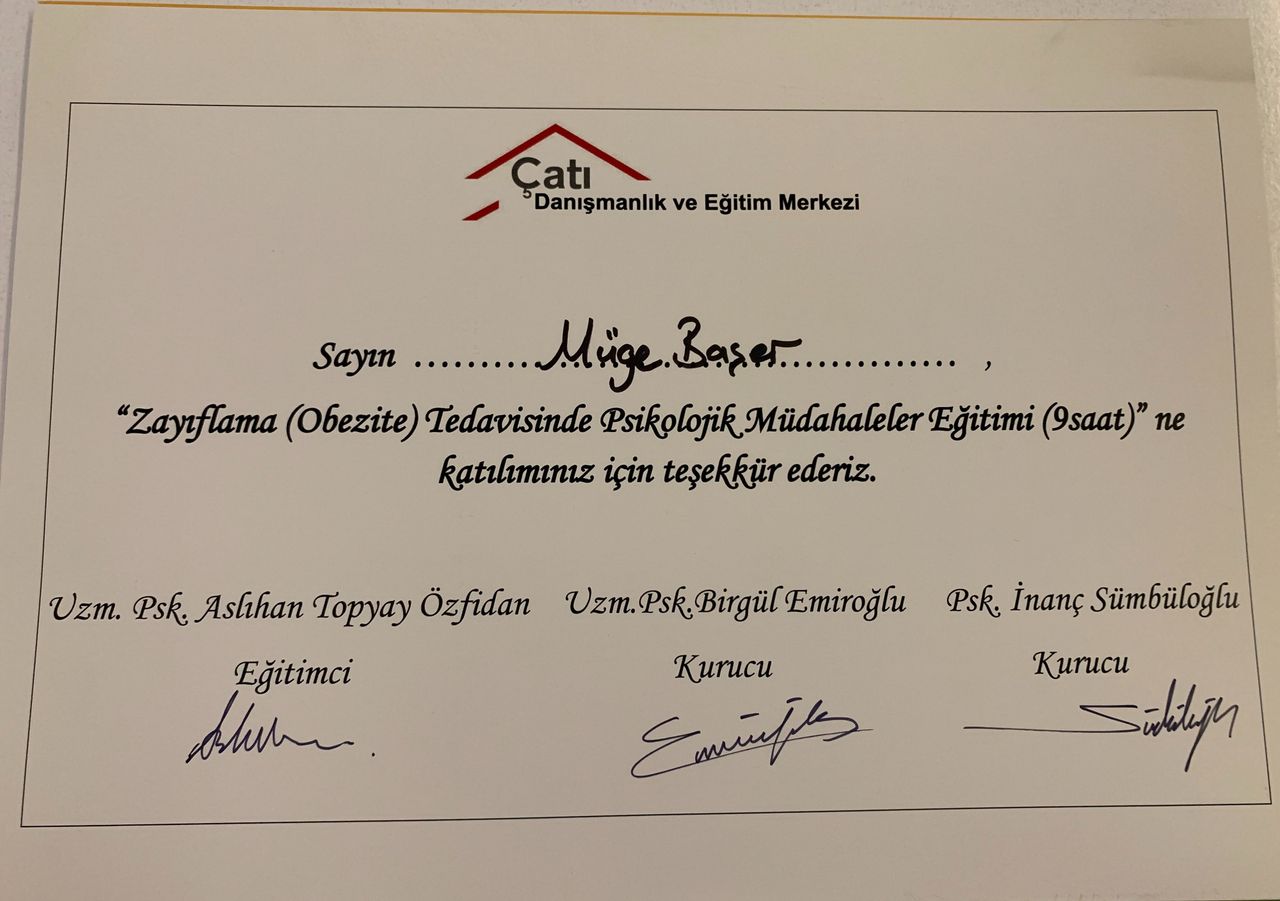 Adresine gitmek zorunda kalmadan Müge Başer Bozok isimli uzmanla online görüşebilir miyim?Evet, Müge Başer Bozok uzaktan danışmanlık sunuyor. Takvimden randevunuzu alırken "online danışmanlık" seçeneğini seçmeniz yeterli, uygun tarih ve saatleri görebileceksiniz.