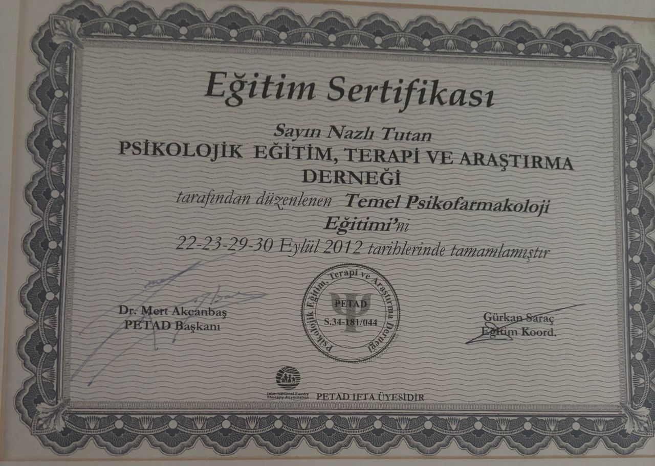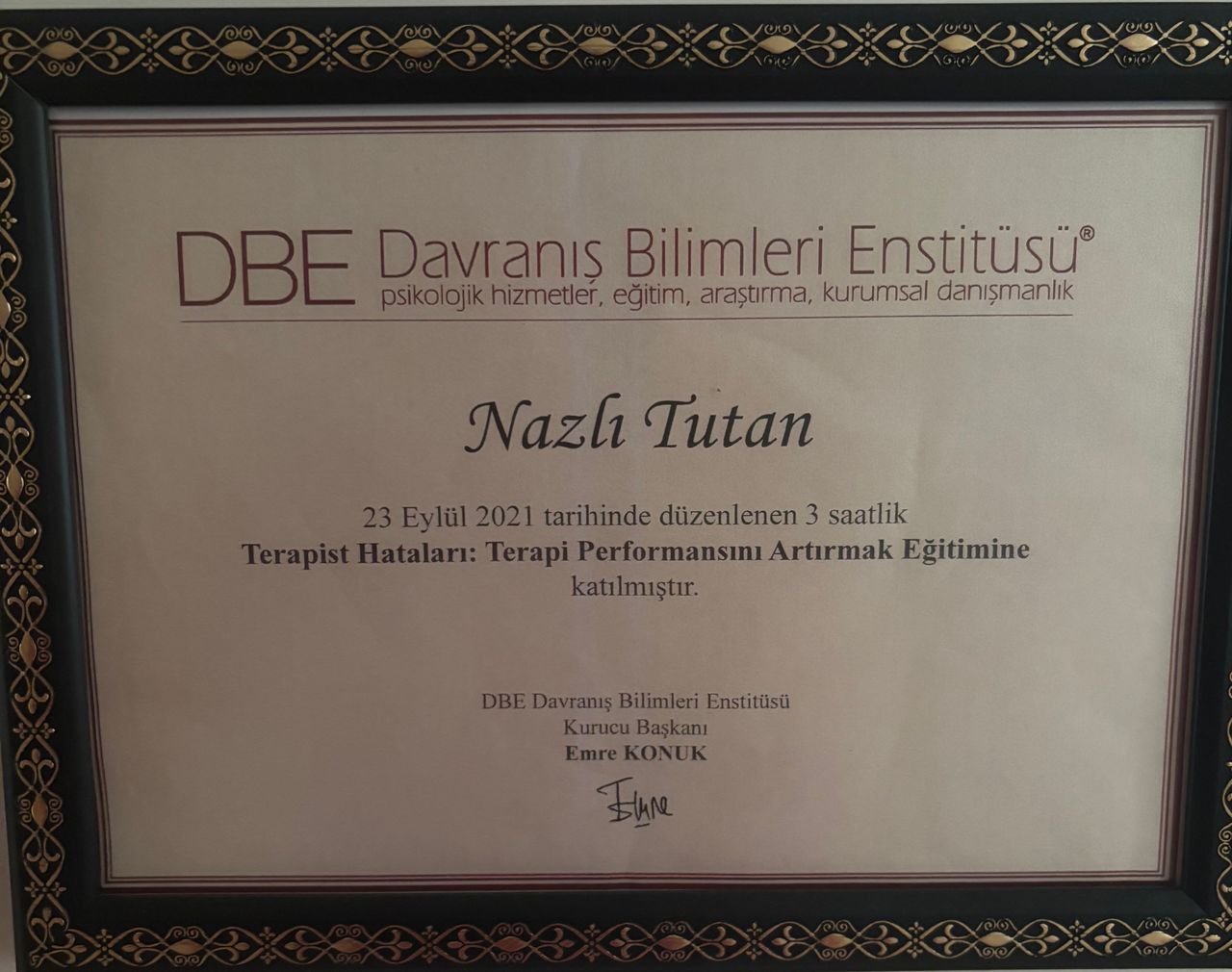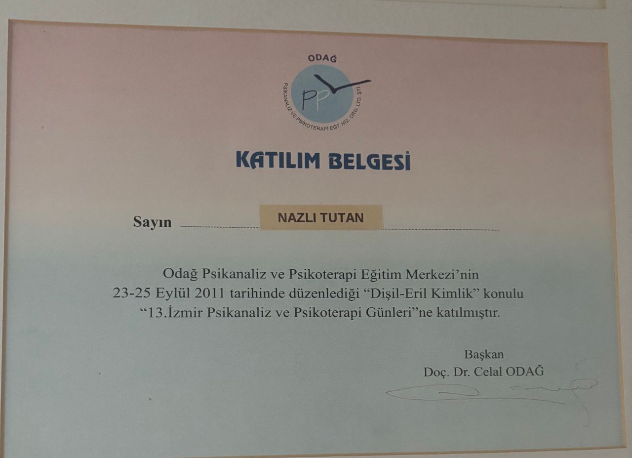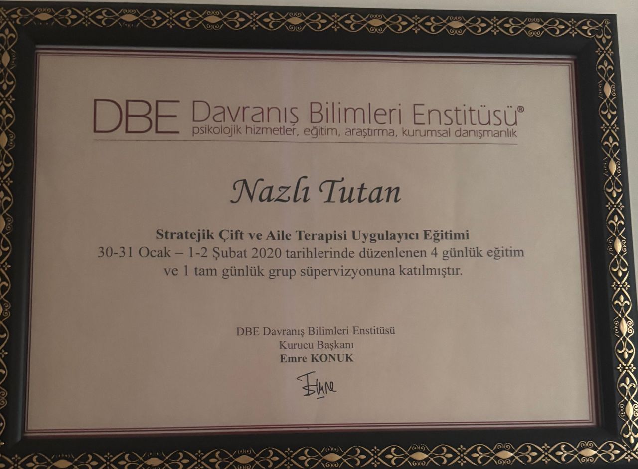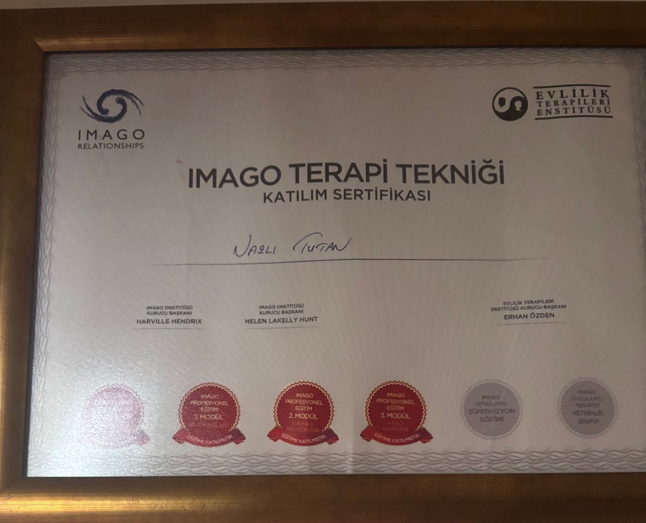 Psk. / Aile Danışmanı Nazlı Tutan çiftlerin sorunlarına yönelik çalışmalarına güç katmak amacıyla İmago Relationship Instute ve Evlilik Terapileri Enstitüsü İşbirliğiyle düzenlenen dünyaca ünlü çift terapisti Dr. Harville Hendrix’in İmago çift terapisi eğitimine katılmış olup,
