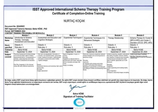 ISST Onaylı Şema Terapi Temel Eğitimi-Bahar Köse