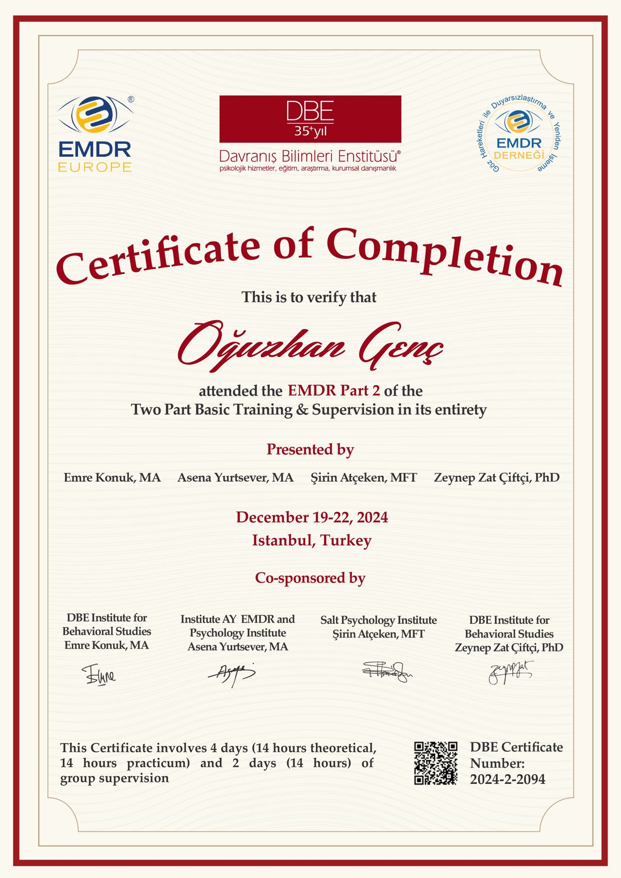EMDR 2.Düzey Eğitimi ve Süpervizyonu - Davranış Bilimleri Enstitüsü Prof. Dr Emre Konuk (2024)