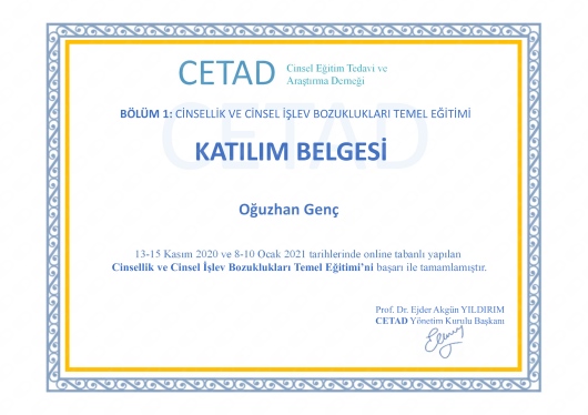 Cinsel Eğitim Tedavi ve Araştırma Derneği (CETAD) Cinsel Terapi Temel Eğitimi (2020)