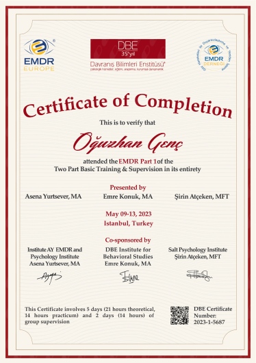 EMDR 1.Düzey Eğitimi ve Süpervizyonu - Davranış Bilimleri Enstitüsü Prof. Dr Emre Konuk (2023)
