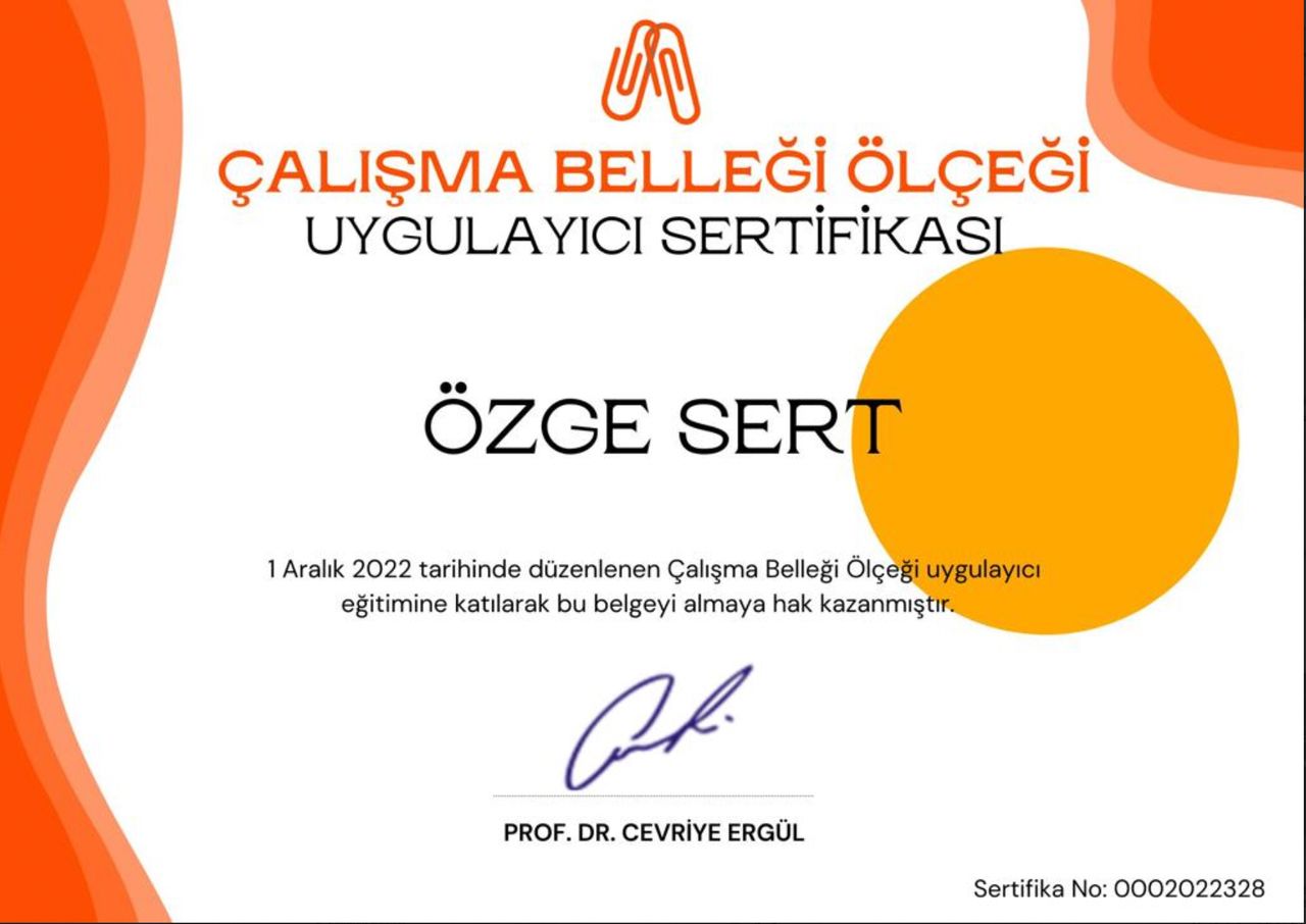 Uzm. Dkt. Özge Sert, Anadolu Üniversitesi dil ve konuşma terapisi lisans bölümünden mezun olmuştur ve Bakırçay Üniversitesinde yüksek lisans eğitimini tamamlamıştır.