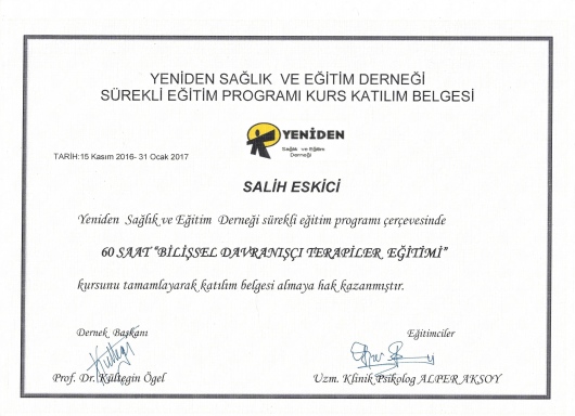 • Özel Sağlık Meslek Hizmet Birimi Klinik Psikolog Salih Eskici • Bilişsel Davranışçı Terapi •