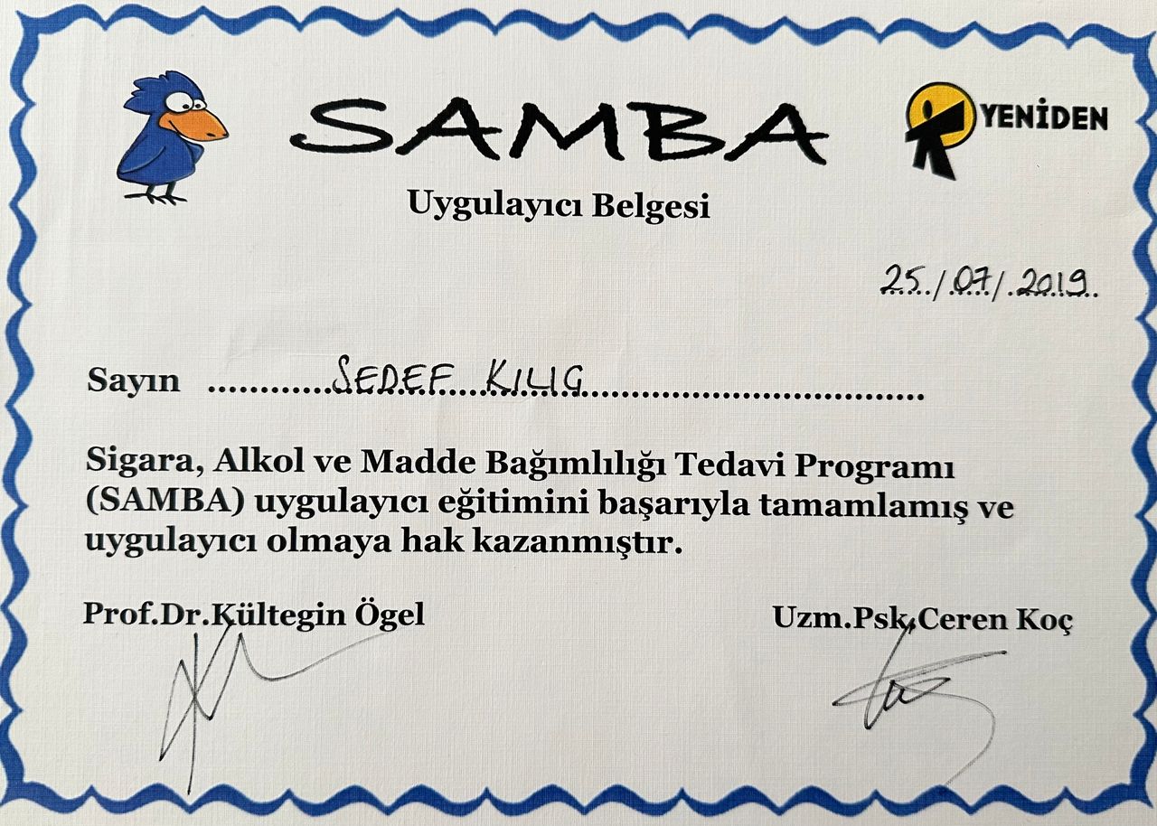 Katıldığı eğitimler arasında Bilişsel Davranışçı Terapi (BDT) İleri Düzey Klinik Uygulamaları, Çift Terapisi: Klinik Değerlendirme ve Müdahale, Psikodinamik Yönelimli Cinsel Terapi Seminerleri, 3. İstanbul Kabul ve Kararlılık Terapisi (ACT) Kongresi, SAMBA (Sigara, Alkol, Madde Bağımlılığı Tedavi Programı) Uygulayıcı Eğitimi ve Objektif Değerlendirmede Kullanılan Psikolojik Çocuk Testleri Uygulayıcı Eğitimi yer almaktadır. Halihazırda yetişkin, çift ve ergen bireylere ihtiyaçlarına uygun olacak biçimde danışmanlık hizmeti vermektedir.