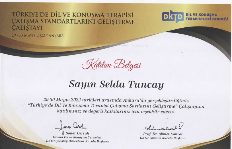 • “Türkiye’de Dil ve Konuşma Terapisi Çalışma Şartlarını Gelişitirme Çalıştayı” The Ankara Otel, 29-30 Mayıs 2022