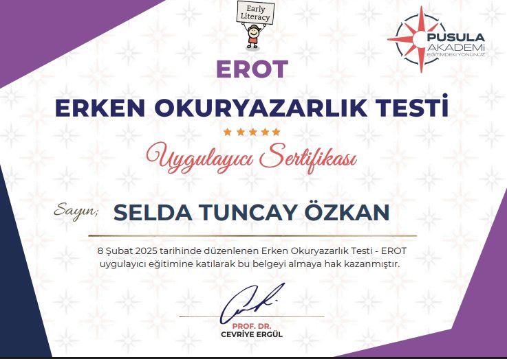 • “Erken Okuryazarlık Testi (EROT) Uygulayıcı Eğitimi”, (Cevriye ERGÜL), 8 Şubat 2025