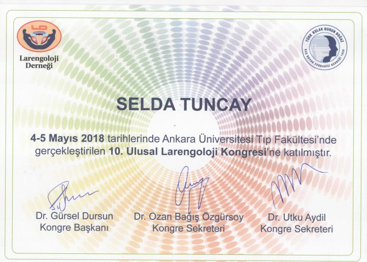 • “X. Ulusal Larengoloji Kongresi” Ankara Üniversitesi, Ankara, 4-5 Mayıs 2018