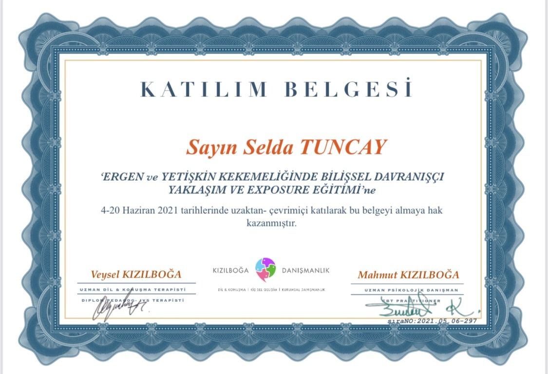 • Ergen ve Yetişkin Kekemeliğinde Bilişsel Davranışçı Yaklaşım ve Exposure Eğitimi, Kızılboğa Danışmanlık, 4-20 Haziran 2021