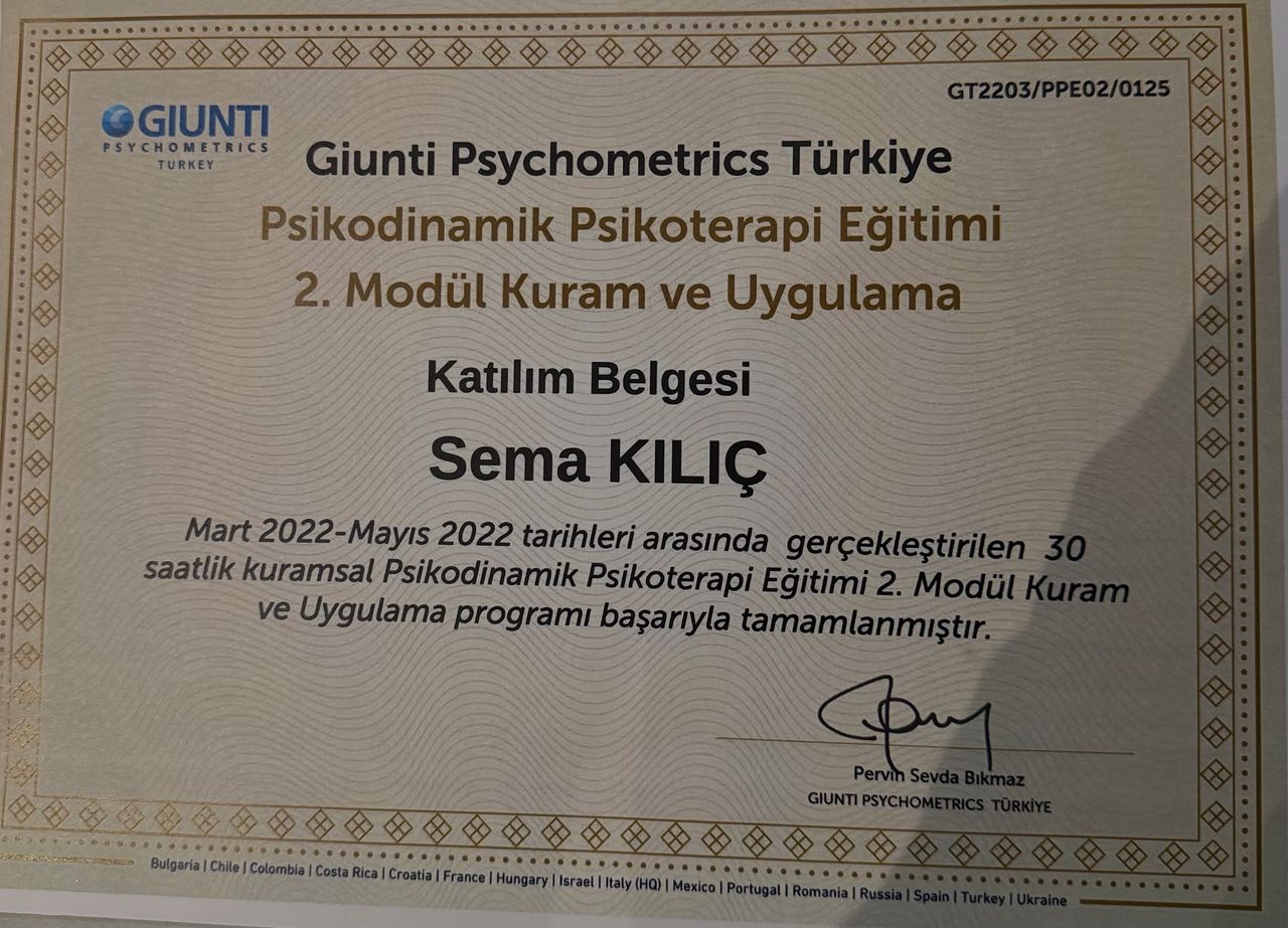 psikolojik olarak kendimi iyi hissetmediğim bir dönemde geldim sema hocama sürecimiz çok güzel ilerledi