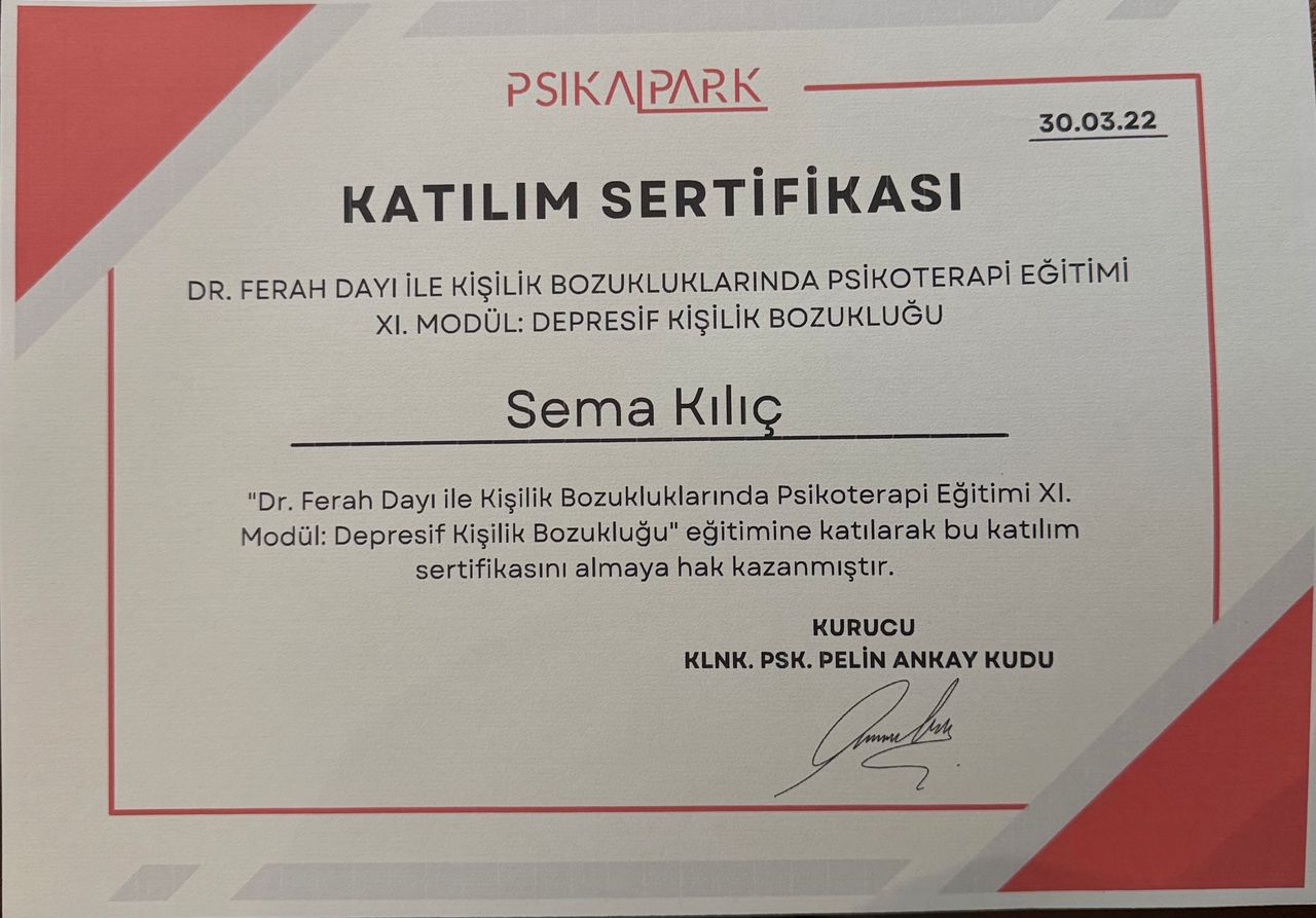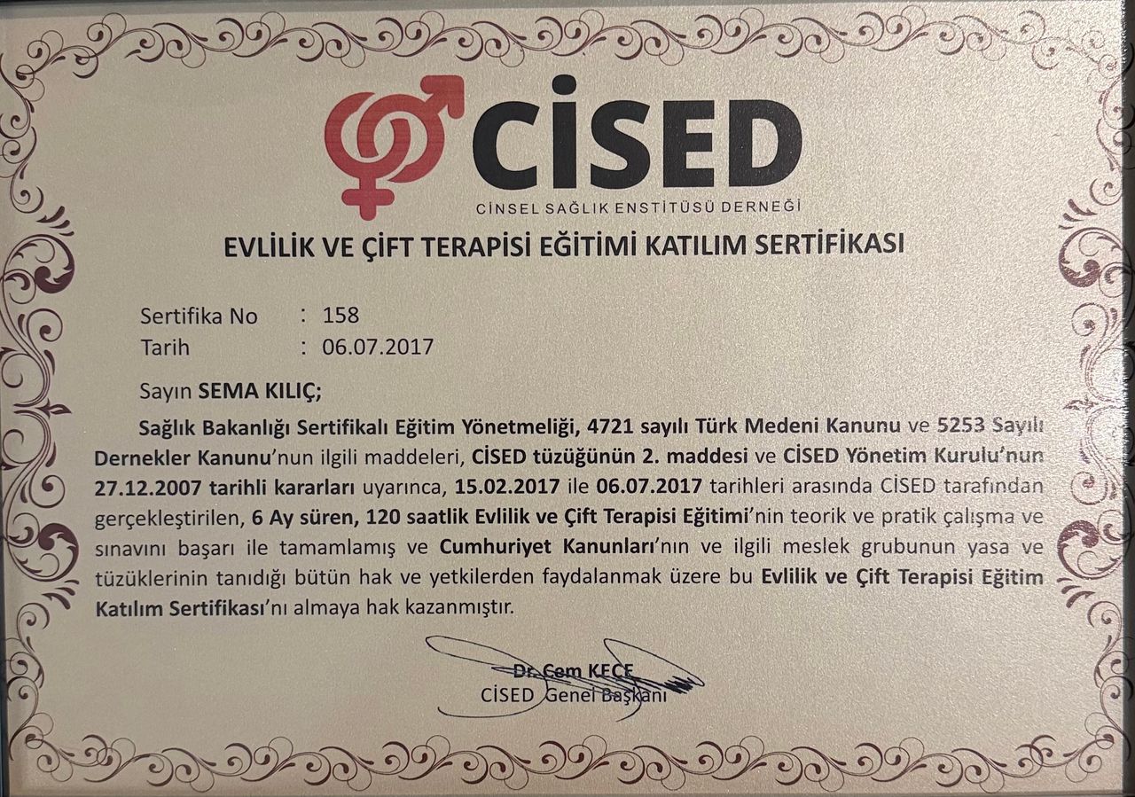 Bireysel olarak başladığım tedavi gayet başarılı gidiyor sema hocamın aydınlatıcı konuşmaları kendimi tanımama yardımcı oluyor çok memnunum