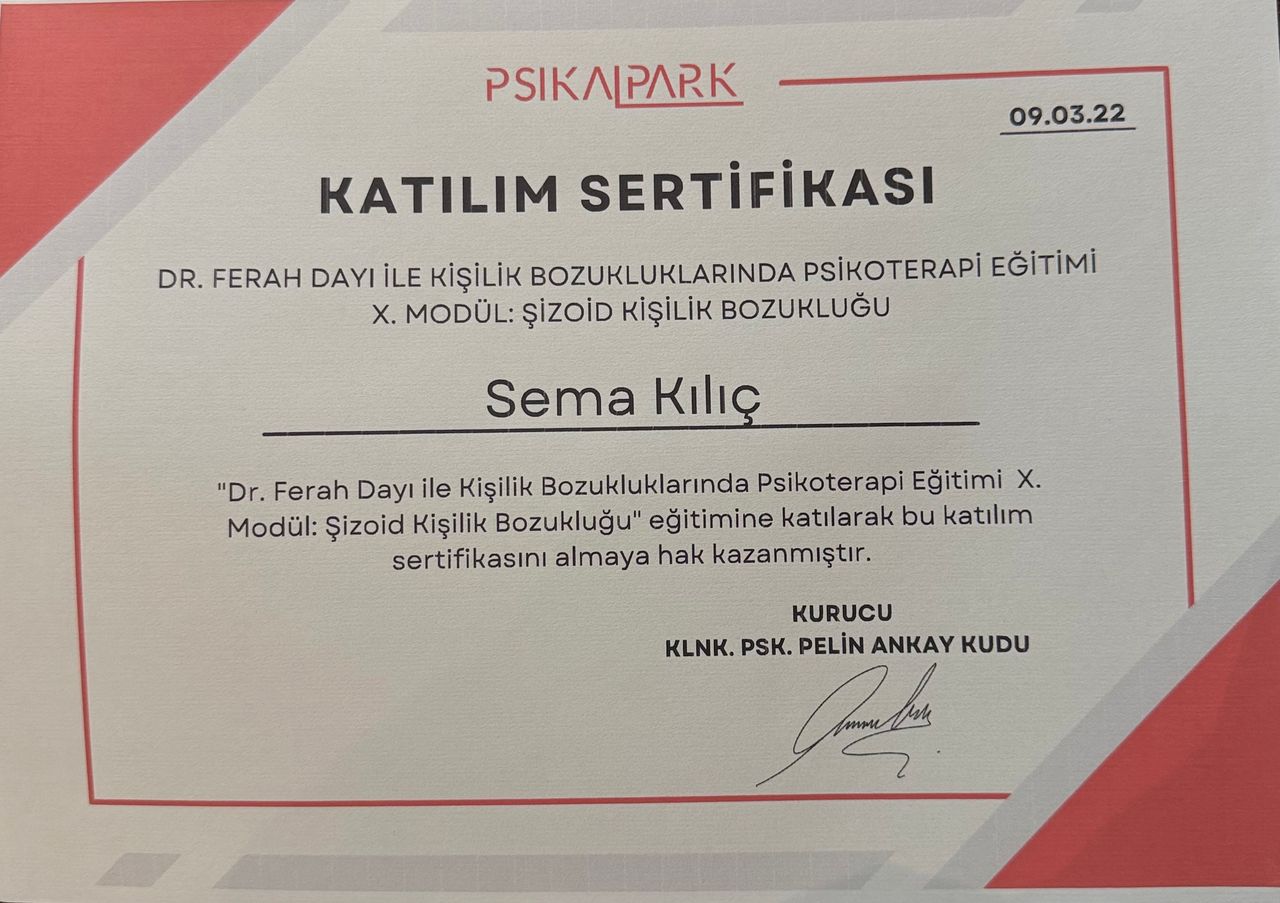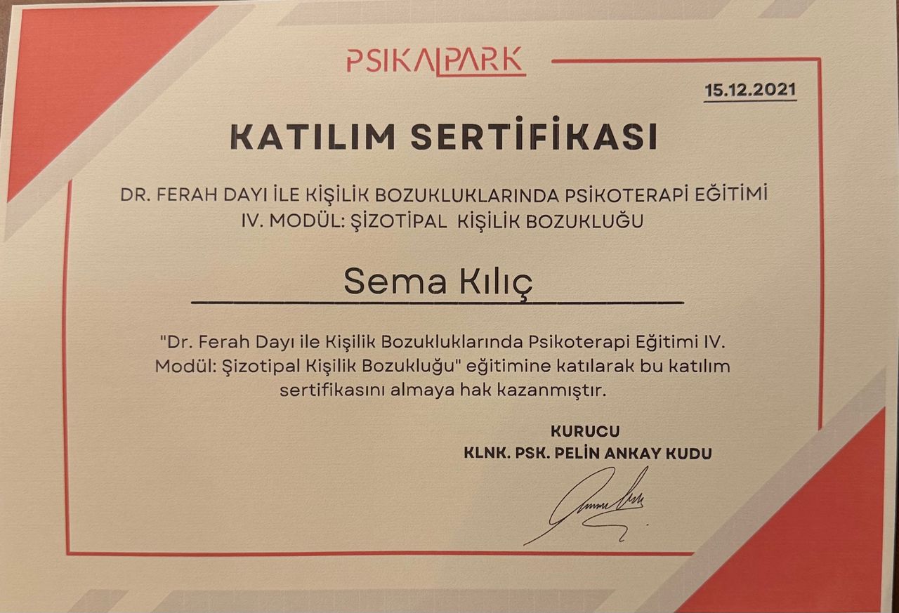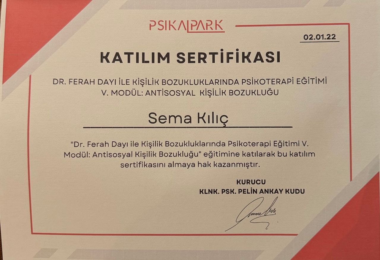 Psk. Sema Kılıç ile arkadaşımın tavsiyesiyle boşanma aşamasında tanıştım. Karanlık bir tünelin içerisinde gibi etrafımdaki insan uğultularında bocalarken kendim için neyin doğru neyin yanlış olduğu karmaşasında Psk. Sema Kılıç ile görüştüm. Pandemi dönemi olduğu için online başlamıştık seanslara. Sema hanım benim hayatıma bir sihirli değnek gibi dokundu. Bana kendimi, duygularımı tanımam ve anlamam için ışık oldu. Her seans sonrası "iyi ki gelmişim, iyi ki tanışmışım" dedim. Güler yüzü, bilgisi, yaklaşımı, tecrübesi, tespitleri çok iyidir. Umarım daha çok insanın Psk. Sema Kılıç ile yolları kesişir ve onlara da ışık olur. Bence Sema hanım, Mersin için çok önemli bir değerdir.