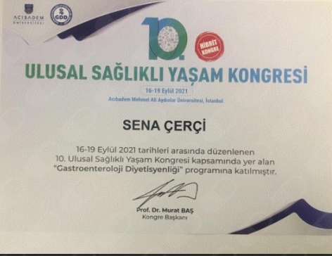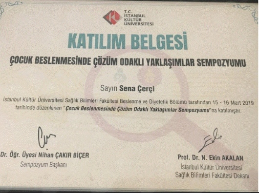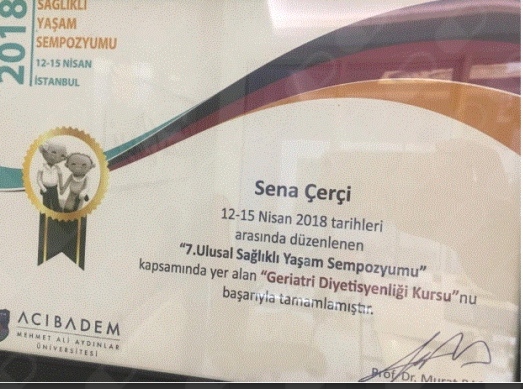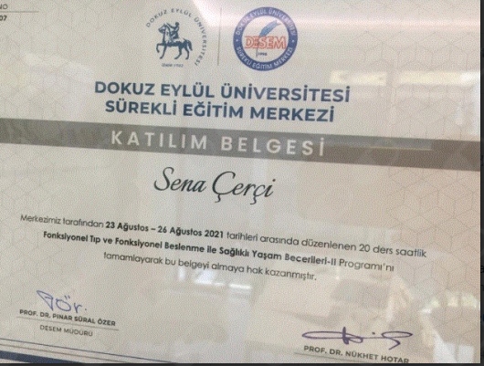 Üniversite eğitimimin yanı sıra güncel gelişmeleri takip etmek amacıyla çeşitli sertifika programları ve sempozyumlara katıldım.Lisans tezimi “Kahvaltıdaki protein miktarının gün içerisindeki iştah ve besin tüketimi üzerine etkisi” üzerine yaptım.Eylül 2019 itibariyle online beslenme danışmalığı,Mayıs 2021 itibariyle de Ümraniye Atatürk Mahallesindeki ofisimde yüz yüze beslenme danışmanlığı vermekteyim.