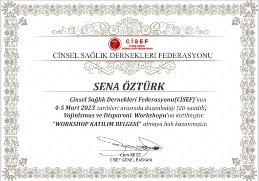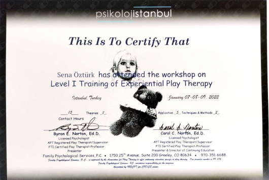 Klinik alanındaki etkinliğini geliştirmek adına Deneyimsel Oyun Terapisi, Çocuk ve Ergenlerde Bilişsel Davranışçı Terapi, Yetişkin Bilişsel Davranışçı Terapisi, EMDR eğitimi, Cinsel Terapi eğitimlerini tamamlamıştır.