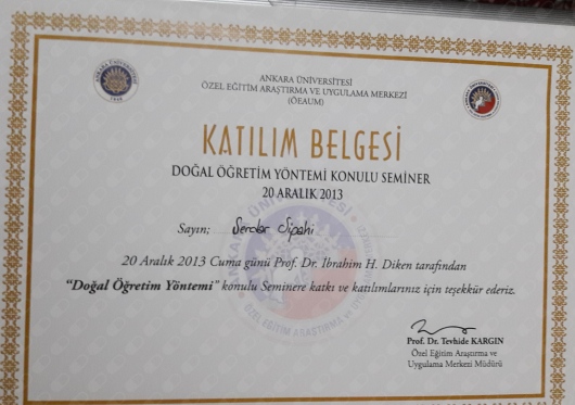 Tavsiye üzerine gitmiştim. Kızıma düşüne bilip kendi kendine üretmeyi öğretti. Bilişsel çalışmalar yaptı. Eşimde bende eğitimciyiz. Çocuğumuzun ilerledikçe çok farklı bir noktaya geldiğini ve kendisini ifade ederken daha da rahatladı. Gelecek hakkında çok daha iyimser olduk. Kendisiyle bir kurumdaydık. Kurumdan ayrıldıktan sonra peşinden gittik. Daha sonra kuruma ortak olarak geldi. O nerdeyse bizde orda olduk diyebilirim.