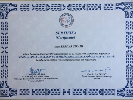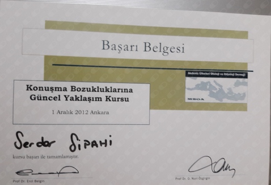 Serdar Hocam'la 2017 Eylül ayında tanıştık. 6 yaşındaki kızım "" k, c, ç, ş, g, z, j, r " seslerinden 4 tanesini hiç çıkaramıyordu 4 tanesini de kalitesiz çıkarıyordu. Serdar Hoca ile ilk ders sonrasında kızım çıkaramadığı seslerin iki tanesini çıkarmaya başladı. Bu 8 sesin tamamını kızım 4 dersin sonunda halletti. Burada tabiki en büyük etki Serdar Hoca'nın bilgi birikimi, tecrübesi ve iletişimi becerisi. İkinci olarak bizde anne babası olarak Serdar Hoca'nın verdiği alıştırmaları evde kızıma uyguladık. Başıma geldiği için söylüyorum ki; Bu işi Ankara'da en iyi yapan insan Serdar Sipahi'dir. Kızımın derslerini bende birebir izledim işini son derece profesyonel yapıyor. Şunu da belirteyim ki bu durumda olan insanlar hiç telaş etmesine gerek yok konuşma bozukluğu BU İŞİ İYİ YAPAN BİR UZMANDAN YARDIM ALARAK ve ÇALIŞARAK halledilebiliyor. Bizim en büyük şansımız Serdar Hoca'dan eğitim almaktı. Benim kızımdaki gibi olan herkese kesinlikle Serdar Sipahi'den eğitim almasını tavsiye ederim. Kendisi aynı zamanda çok sayıda uzman konuşma terapisti yetiştirmiş ve eğitim vermiş biridir. Bu özelliği sanırım Serdar Sipahi'nin mesleğinde ne kadar deneyimli olduğu konusunda size bilgi verir.