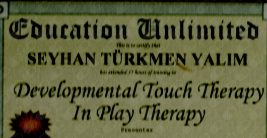 Uluslararası Oyun Terapisi Derneği’ne (APT) kayıtlı Oyun Terapisti (Registered play therapist) olan, Klinik Psikolog, Psikoterapist REYHANA SEEDAT yönetimindeki 2 yıl süren Oyun Terapisi Sertifika programı eğitimine katıldım;