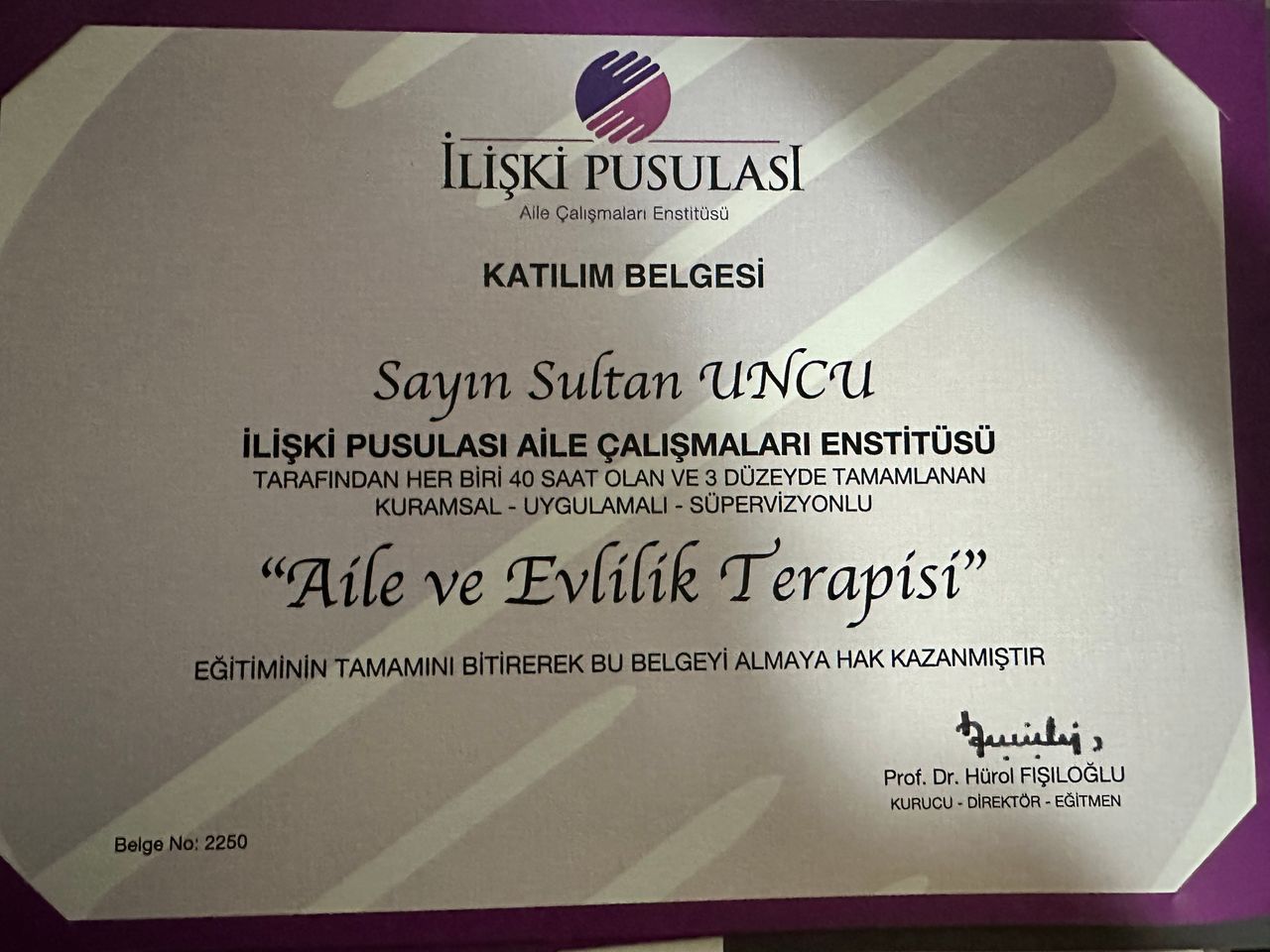 Sultan hanım ile aile terapisi amacıyla yollarımız kesişti. Bu süreçte kendimizi ifade etmekte, ilişkimiz için ihtiyacımız olan çözümlerde bize çizdiği yol haritası çok anlamlı anlaşılır . Her iki tarafa da objektif olarak olması ve olmaması gerekenleri açıkça ifade ettiği için hayatımıza yerleştirmek daha olası. Yolumuzu aydınlattığı için şanslıyız