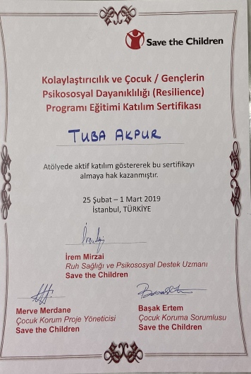 *Kolaylaştırıcılık ve çocuk/gençlerin Psikososyal Dayanıklılığı Programı Eğitimi ( Save the Children Derneği)
