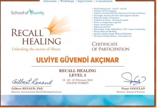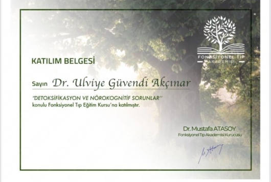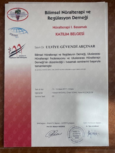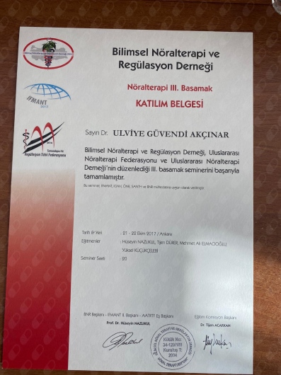 Tedavi yöntemleri için eğitimlerini tamamlamış ve sertifikalandırmış olup halen bu konularla ilgili hizmet vermektedir.