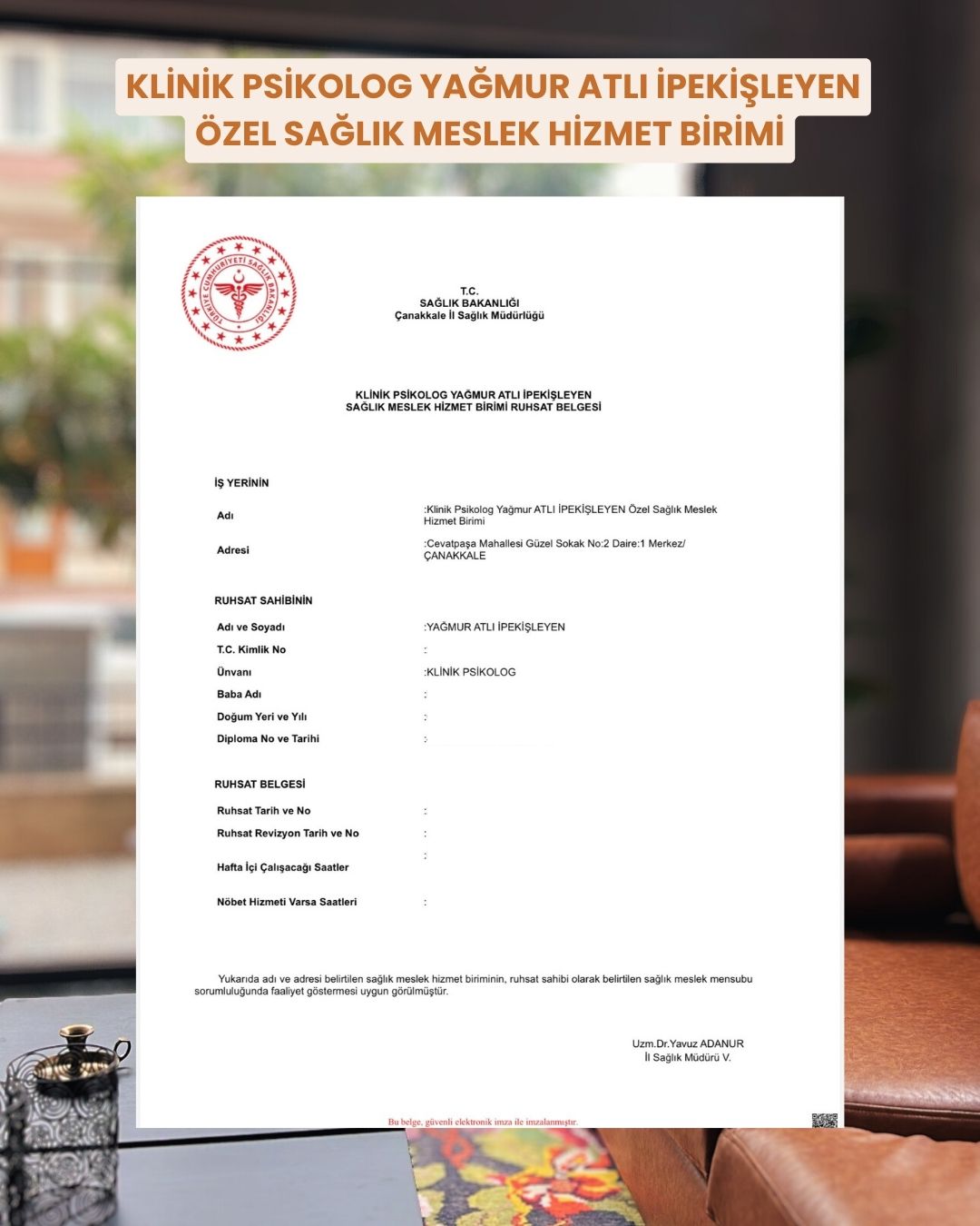 Yağmur Atlı İpekişleyen adresi nerede?Yağmur Atlı İpekişleyen şuradaki hasta / danışanları görüyor: -