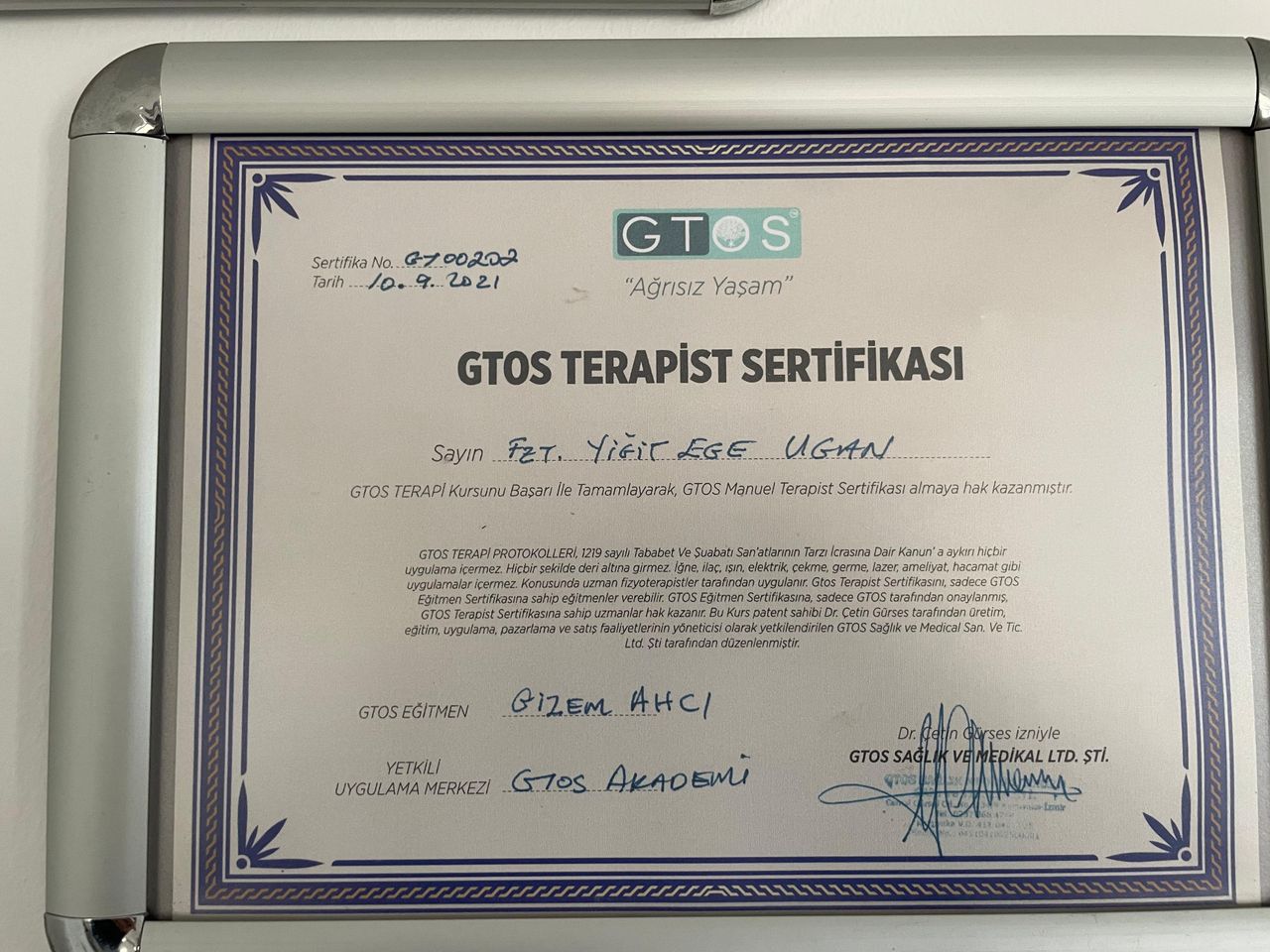Fizyoterapist Yiğit Ege Ugan Özel Sağlık Meslek Hizmet Birimi