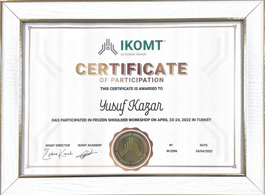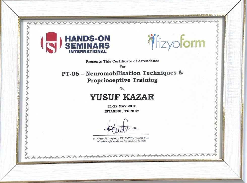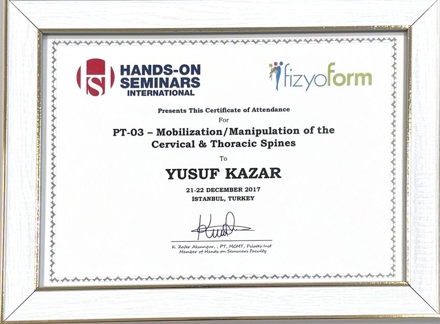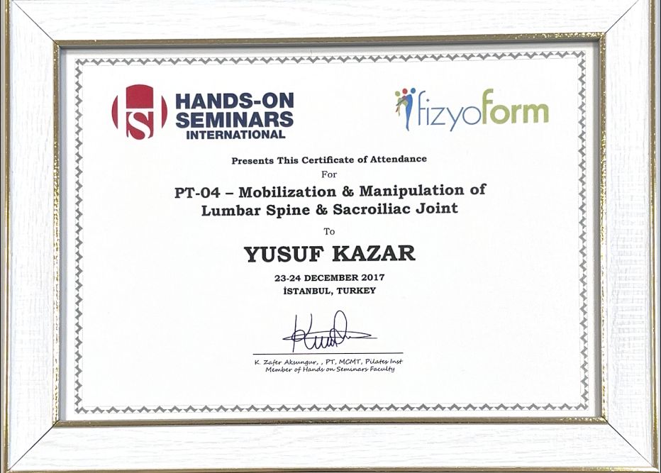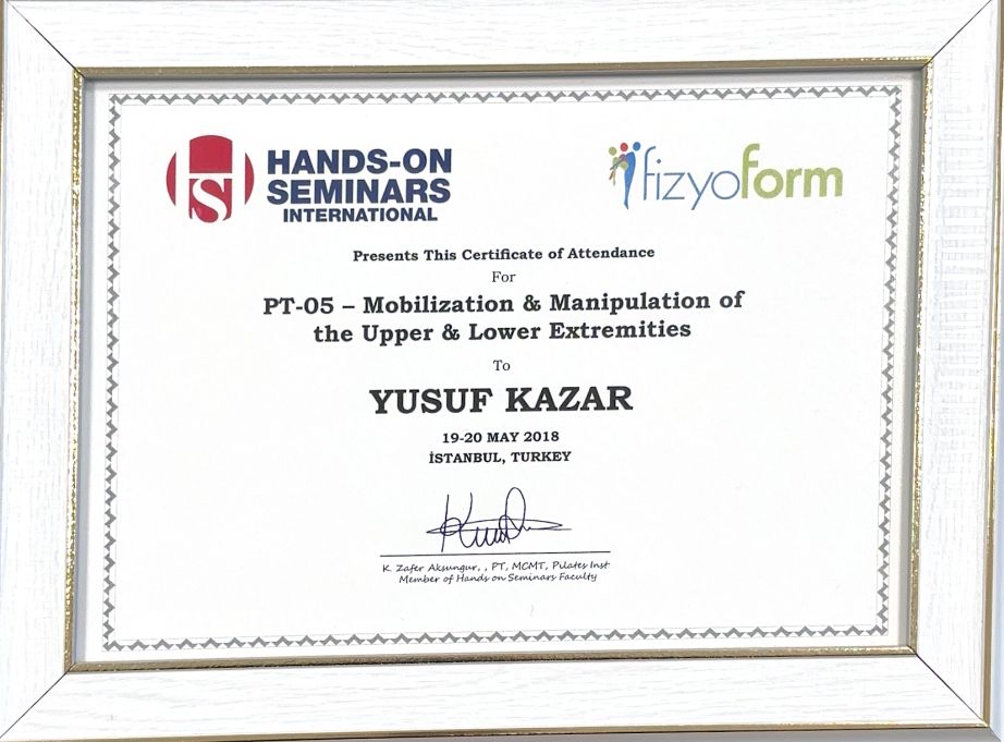 Fizyoterapist Yusuf Kazar ile buluşmamız, doğumsal kalça displazisine bağlı komplikasyonların önlenmesi amacıyla fizyoterapi tedavisi istememle 2017 yılında başladı. Yusuf Kazar, sağlık durumumun iyileşmesi için bana manuel terapi ve egzersiz tedavisi uyguladı. 2021 yılında bilateral total kalça protezi operasyonumdan sonra Yusuf Kazar bana yeniden yürümeyi öğretti. Uzun zamandır mevcut kronik kemik eklem sorunlarımın komplikasyon olmadan kontrol altına alınmasını ve kalça protez operasyonu sonrasında hızlı iyileşmem Fizyoterapist Yusuf Kazar sayesinde oldu. Yusuf Kazar son derece başarılı bir fizyoterapisttir.