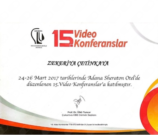 -15. Videokonfrenslar Kulak Burun Boğaz Derneği Adana 24-26 Mart 2017