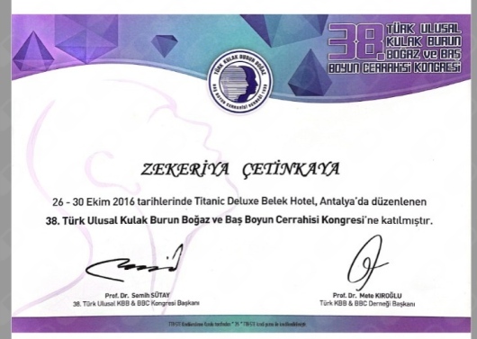 -38. Türk Ulusal Kulak Burun Boğaz ve Baş Boyun Cerrahisi Kongresi Antalya 26-30 Ekim 2016