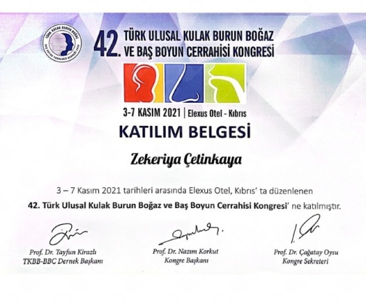 -42. Türk Ulusal Kulak Burun Boğaz ve Baş Boyun Cerrahisi Kongresi Kıbrıs 3-7 Kasım 2021