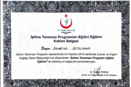- TC Sağlık Bakanlığı Türkiye Halk Sağlığı Kurumu İşitme Taraması Programları Eğitici Eğitimi 4 Haziran 2013 Ankara