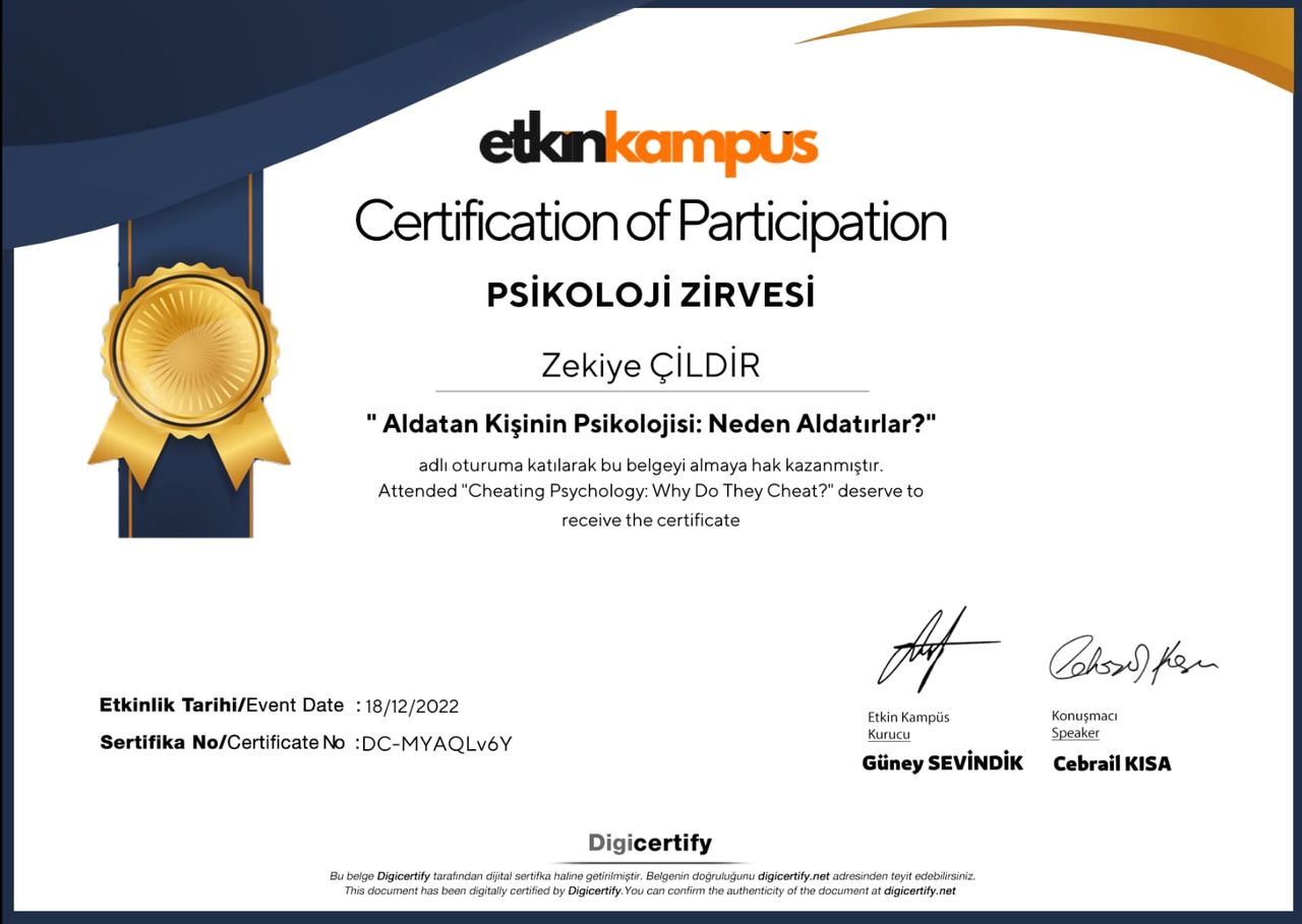 Ankara Medipol Üniversitesi Psikoloji Bölümü’nden 2025 yılında mezun oldum. Eğitim sürecinde edindiğim teorik bilgileri staj ve uygulamalarla destekledim. Mesleki yetkinliğimi artırmaya önem veriyor; etik ilkelere uygun, danışan odaklı bir çalışma anlayışıyla mesleki gelişimimi sürdürmeyi hedefliyorum.