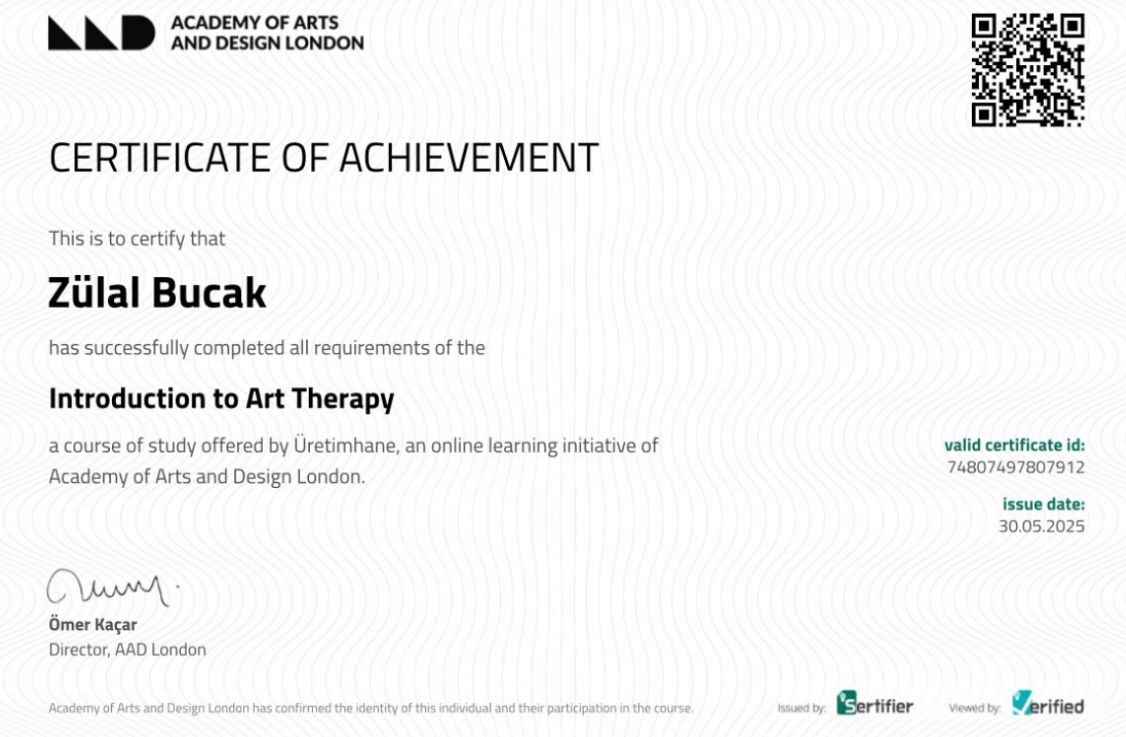 Merhaba! Ben Uzman Psikolog Zülal Bucak. Ankara Çukurambar’daki 1071 Usta Plaza’da bulunan ofisimiz Artiste’te yüz yüze, aynı zamanda online olarak danışmanlık görüşmelerimi sürdürüyorum. Uzun süredir ergen ve yetişkin bireylerle çalışıyor; onların yaşamsal zorluklarını daha sağlıklı şekilde ele alabilmeleri için danışmanlık desteği sağlıyorum. Çalışma alanlarım arasında bireysel danışmanlık, ergen danışmanlığı ve aile danışmanlığı yer alıyor. Psikoloji lisans eğitimimi Ankara Atılım Üniversitesi (İngilizce) bölümünde dereceyle ve erken mezun olarak tamamladım. Ardından yüksek lisans eğitimimi Ankara Yıldırım Beyazıt Üniversitesi’nde tamamladım. Akademik eğitimimin yanı sıra, uzun süredir sahada ergenler ve yetişkinlerle birebir çalışarak edindiğim tecrübeler; danışmanlık süreçlerine hem bilimsel hem de insani bir bakış açısıyla yaklaşmamı sağladı. Ayrıca sanat terapisi alanındaki eğitimimi Londra’daki Academy of Art and Design London’da tamamladım. Bu alanda bireysel danışmanlıkla birlikte, aynı zamanda sanat terapisi temelli workshoplar da düzenliyorum. Yaratıcılık, ifade gücü ve psikolojik farkındalığı bir araya getiren bu atölye çalışmalarıyla daha derinlemesine bir keşif alanı sunuyorum. Bu sayfa üzerinden psikolojiye dair içerikler, yaklaşan atölye çalışmaları ve danışmanlık sürecine dair bilgilendirici paylaşımlar bulabilirsiniz. Eğer kendiniz için veya çocuğunuz için destek arayışındaysanız, güvenli ve kapsayıcı bir çalışma alanında buluşabiliriz.